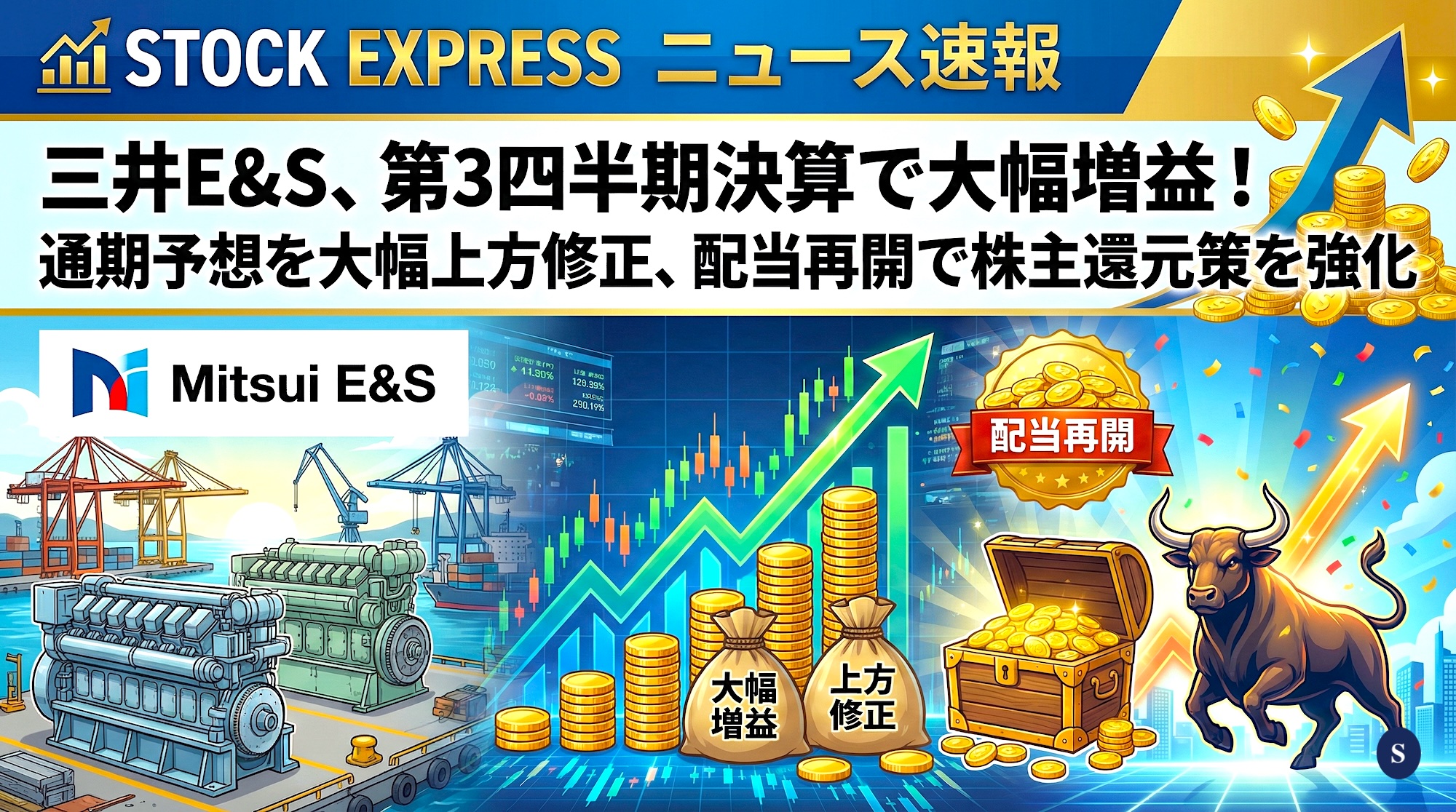 Mitsui E&S Co., Ltd. <7003> has released its financial results for the third quarter of the fiscal year ending March 2026, showing robust performance in revenue and profitability, and has upgraded its full-year forecast while reinstating shareholder dividends.