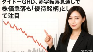 ダイドーグループホールディングス株式会社(証券コード:2590)は8月27日、2026年1月期の業績予想を発表し、最終損益が30億円の赤字に転落する見通しを示しました。前期の38億円黒字から一転する形となり、発表翌日の株価は年初来安値を更新、6.7%安と急落しました。国内自販機を中心とした飲料販売が想定以上に落ち込み、原材料費・物流費・人件費の高騰をカバーしきれなかったことが赤字要因。さらに、事業での超インフレ会計適用による影響額が22億円の押し下げ要因となり、利益を大きく圧迫しました。決算発表を受け、株価は急落。一時2,470円まで下落し、2500円割れを記録しました。直近高値の3,600円水準から大幅に下げており、長期チャートでも割安感が意識される局面となっています。ダイドーGHDは「業績悪化で株価は低迷中だが、株主優待の魅力で根強い人気を持つ銘柄」。中長期の視点でインカムゲインや優待を重視する投資家に注目される可能性が高いといえるでしょう。