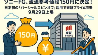 ソニーFG、流通参考値段150円に決定!日本初の「パーシャルスピンオフ」活用で東証プライム市場へ9月29日上場
