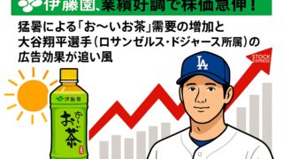 伊藤園(2593)は9月1日、2026年4月期第1四半期(2025年5〜7月期)の連結決算を発表しました。売上高は前年同期比4.7%増の1308億円、営業利益は17.3%増の83億円、純利益は29%増の57億円と大幅な増収増益を記録しました。海外事業の営業利益は31%増と力強く伸長し、北米・ASEAN市場における「お〜いお茶」シリーズやティーバッグの販売が大きく寄与しました。特にティーバッグは前年同期比60%増と急拡大しています。決算発表を受け、伊藤園株は東京株式市場で急伸。2日には一時9%高の3686円まで上昇し、年初来高値を更新しました。特に通期業績予想は据え置かれたものの、第1四半期時点で営業利益進捗率が32.7%を超えており、今後の上振れ期待が高まっています。市場では「猛暑が続けば通期予想超過の可能性もある」との声も聞かれています。